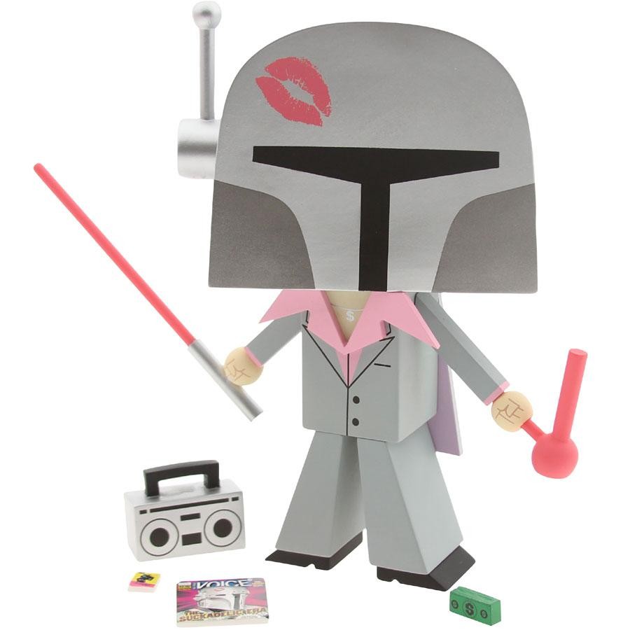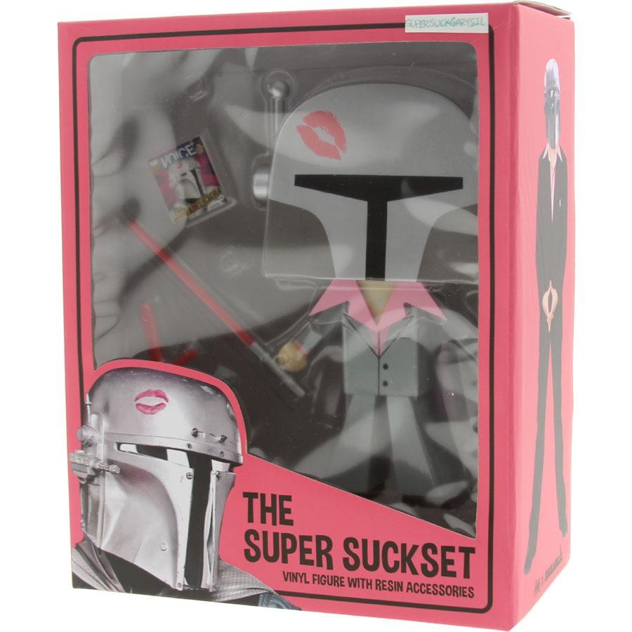 The BAIT-exclusive Super Suckset is comprised of two collectible figures produced by 3D Retro, one featuring a Morgan Phillips head and the other with a Star Wars-inspired helmet. Both figures include the accessories from the original wooden set, now in resin form. Each figure is limited to 210 pieces worldwide (for a total of 420).